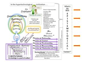 E così, tra cambiamento dei paradigmi e trasformazione antropologica (1996), stiamo assistendo/vivendo – con poca consapevolezza – il ribaltamento (the Overturn) dell’interazione complessa tra evoluzione biologica ed evoluzione culturale*[4] (ibidem): una questione profonda anche, e soprattutto, in termini di “cultura della comunicazione” (1996), resa ancor più complessa, e problematica, dall’assenza di un sistema di pensiero e di un modello teorico-interpretativo in grado di osservare, riconoscere e comprendere l’ipercomplessità e l’irruzione, per certi versi, prepotente del caos[5].